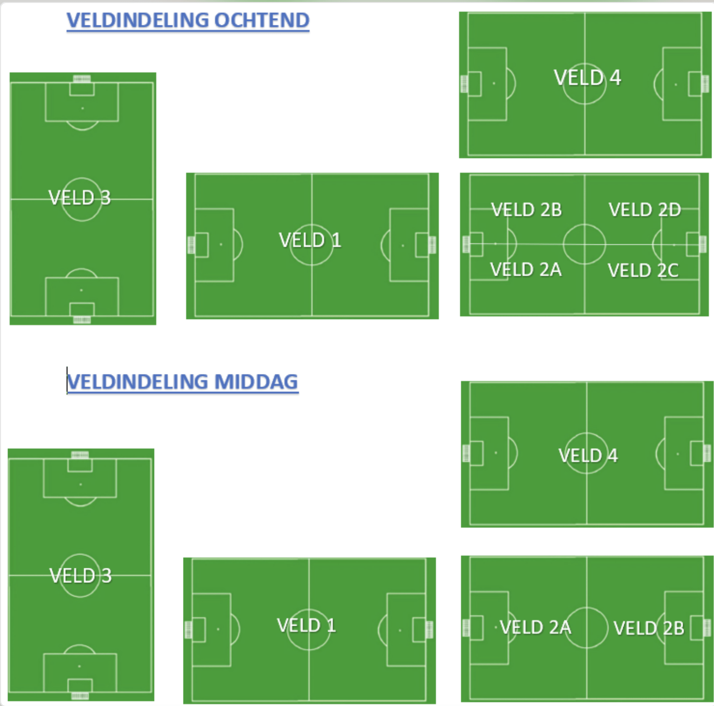 • Iedere vereniging moet in tenue, 5 minuten voor aanvang op het juiste speelveld aanwezig zijn.